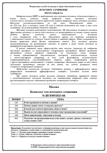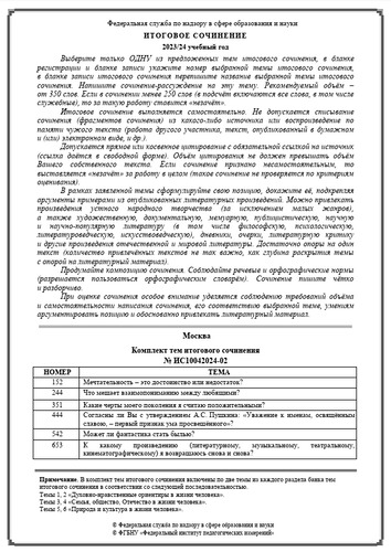 Темы итогового сочинения 2024/2025 по часовым поясам. 1 - 04.12.2024 2 - 05.02.2025 Отдельно |